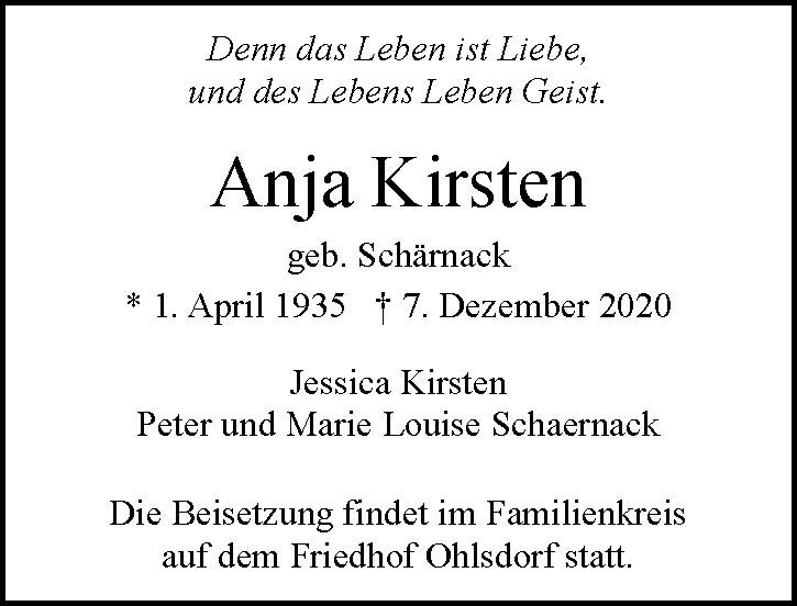 Beigesetzt in Hamburg Ohlsdorf, Familiengrab A. Kirsten